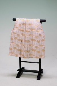 三歳女児の祝着としては、肩上げをした着物に帯を結ばず被布(ヒフ)という袖無しの上着を羽織るのが一般的です。