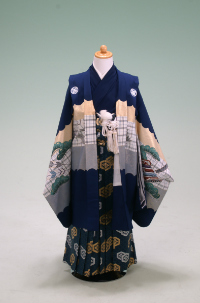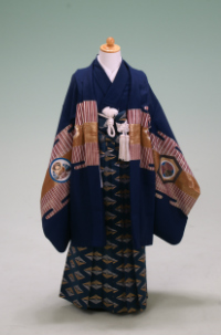 三歳男児の祝着は、着物に兵児帯を結び袖なし羽織のスタイルが一般的でしたが、 現在は五歳と同じ紋付袴スタイルが人気です。